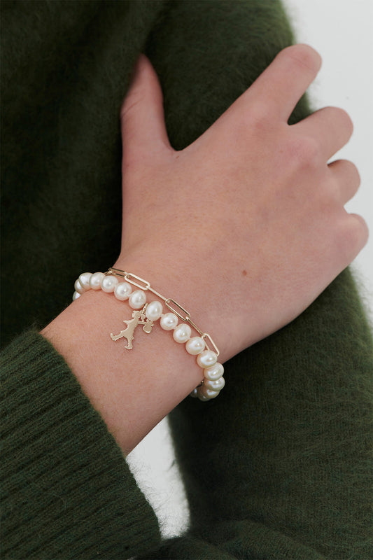 Runaway Safety Pin & Pearls Bracelet with Freshwater Pearls Gold-Plated